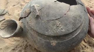 姐弟湖边游玩 捡到千年“宝物”