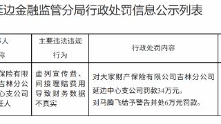 大家财产保险吉林分公司延边中心支公司因虚列宣传费等被罚款34万元