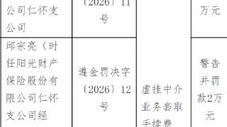 阳光财产保险怀支公司因虚挂中介业务套取手续费被罚款6万元