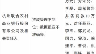杭州联合农村商业银行因贷款管理不到位等被罚款1110万元